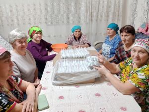 Акхуҗа авылы хатын-кызлары “Ярдәм янәшә “акциясе кысаларында Украина җирлегендә баручы махсус хәрби операциядә катнашучы солдатларга изге теләкләр, хәер-догалар тели-тели кулдан кискән өй токмачы әзерләделәр.